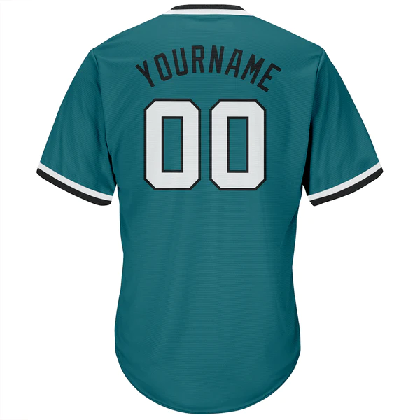 Custom Aqua White-Black Authentic Throwback Rib-Knit Baseball Jersey Shirt