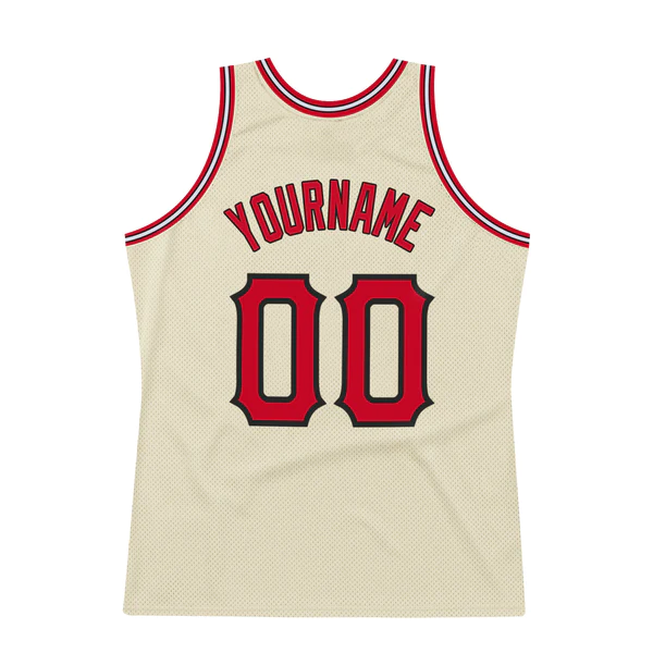 Custom Cream Red-Black Authentic Throwback Basketball Jersey