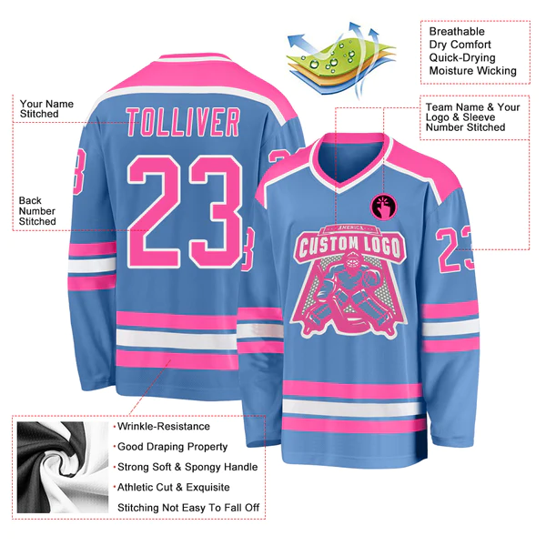 Custom Light Blue Pink-White Hockey Jersey