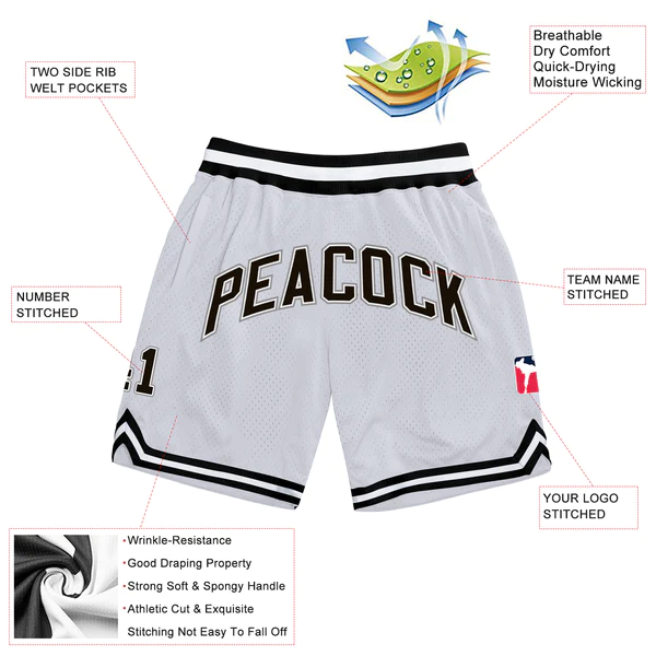 Custom White Black-Gray Authentic Throwback Basketball Shorts