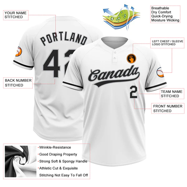 Custom White Black-Gray Two-Button Unisex Softball Jersey