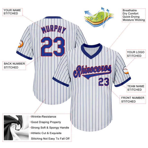 Custom White Royal Pinstripe Royal-Red Authentic Throwback Rib-Knit Baseball Jersey Shirt